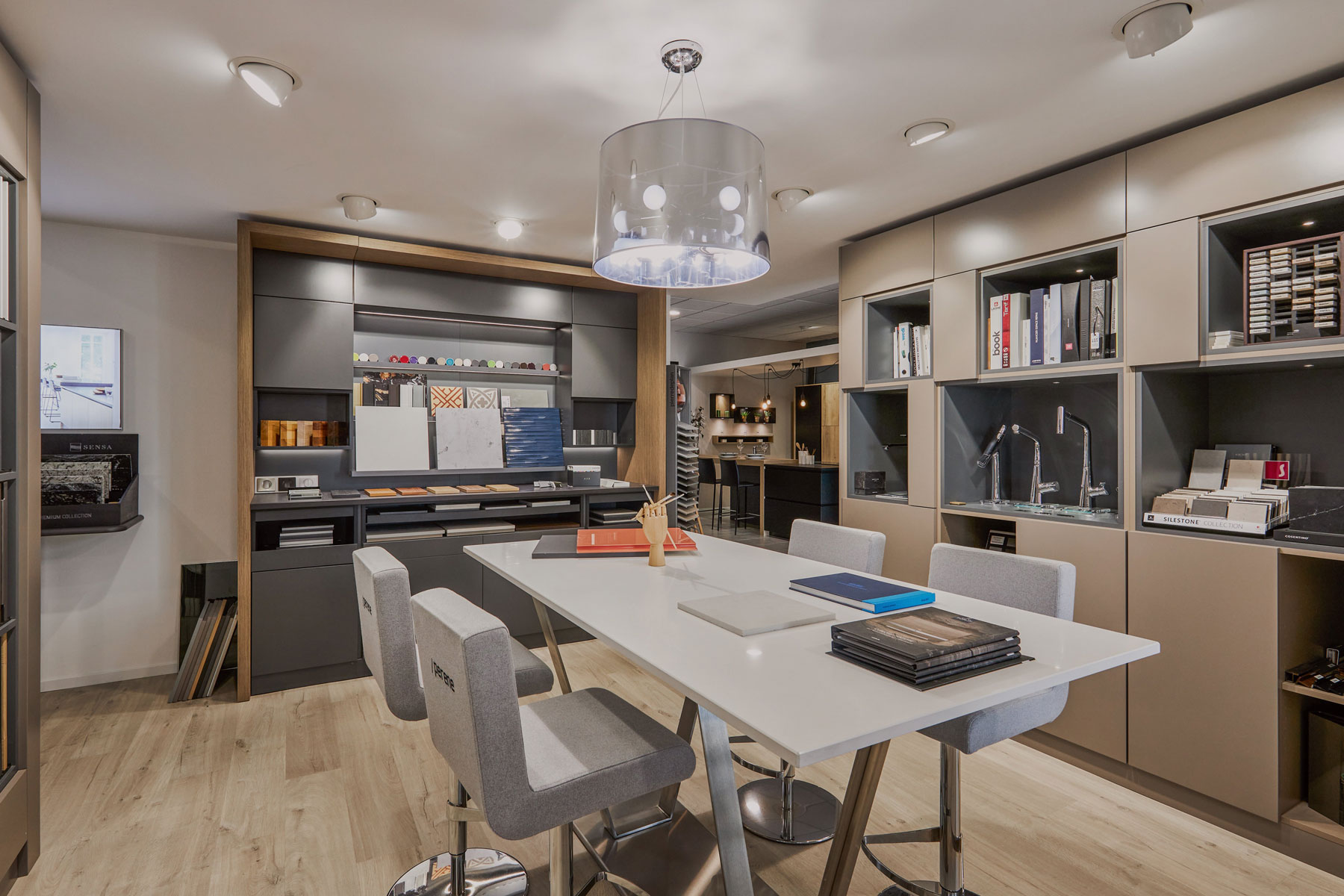 Pensée comme un atelier de création, chaque boutique exprime à la fois la philosophie de Perene et la personnalité de l’agenceur. C’est un lieu chaleureux, intime, confortable... où l’agenceur prendra plaisir à vous recevoir comme il le ferait chez lui. Matières et planches tendance se côtoient pour faire de l'élaboration de votre projet, un moment de création passionnant. Plus qu’une boutique, c’est un studio d’exploration et d’inspiration.