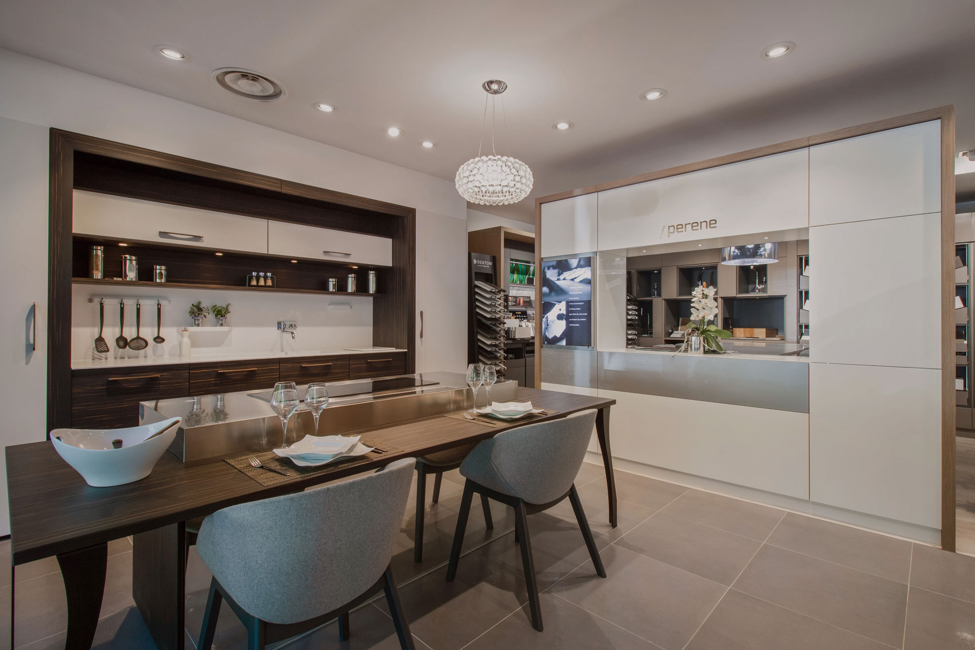 Pensée comme un atelier de création, chaque boutique exprime à la fois la philosophie de Perene et la personnalité de l’agenceur. C’est un lieu chaleureux, intime, confortable... où l’agenceur prendra plaisir à vous recevoir comme il le ferait chez lui. Matières et planches tendance se côtoient pour faire de l'élaboration de votre projet, un moment de création passionnant. Plus qu’une boutique, c’est un studio d’exploration et d’inspiration.